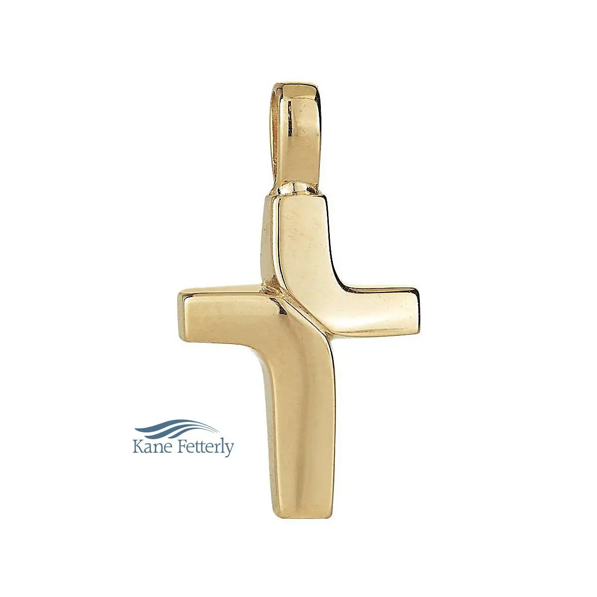 Cross cremation pendant. Hand-crafted in 14k gold.