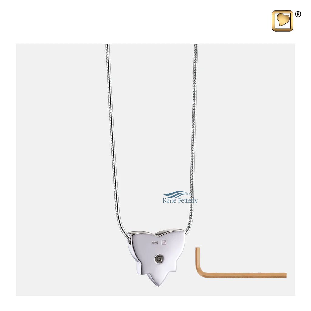 The back of the pendant features a small compartment designed to hold a token of cremated remains.