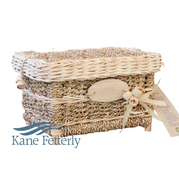 Urne faite de fibres végétales naturelles non traitées (rotin et herbiers marins).